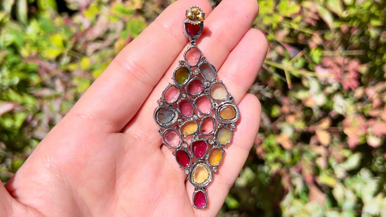 Fine Multi Colored 34 Carats Tourmaline And Diamond Earrings At 1stdibs