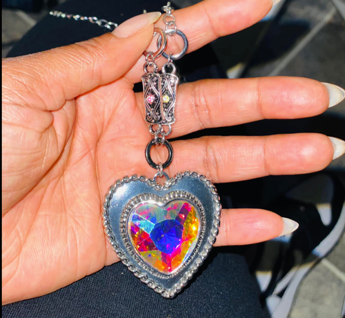 Heart Full Of Fabulous Multi Iridescent Heart Gem Silver Necklace Sugar Bee Bling Paparazzi Jewelry And Accessories