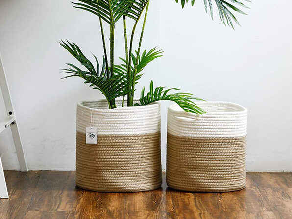 Amazon Com Potet Plant Basket 12 X 12 Inch Indoor Planter Woven Cotton Storage Orgnzanizer Basket White Brown Large Patio Lawn Garden